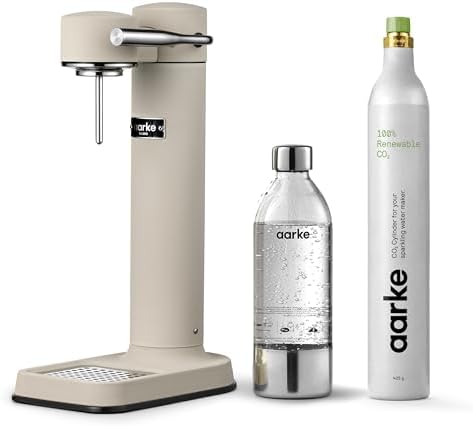• Aarke Carbonator lll with CO2 Cylinder, Sparkling & Carbonation Water Machine, Stainless Steel with PET BPA-Free Reusable Bottle Volume 1L/34 fl oz (Sand)