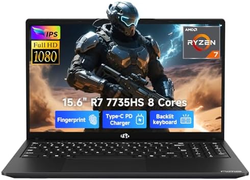 NIMO Gaming-Laptop, 15.6″ Computer with AMD 8 Cores Ryzen 7 7735HS (Beat i7-12650H, Up to 4.75GHz), 16GB DDR5 1TB SSD Business Laptop with Radeon 680M Graphics, 100W Type-C, Backlit KB, Fingerprint
