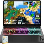 • HP Omen 14 Transcend AI Gaming Laptop | 14″ 3K OLED 120Hz (100% DCI-P3)| Intel Core Ultra 7 255H | 32GB DDR5 1TB SSD | NVIDIA GeForce RTX 5060 | RGB Backlit Thunderbolt 4 Win11 w/DLCA Accessory