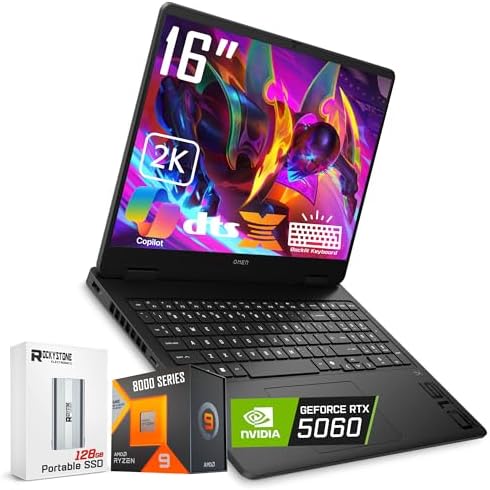 • HP OMEN 16 Gaming Laptop, 144Hz 2K Display, Ryzen 9 8940HX(>i9-13900H, 5.3 GHz), GeForce RTX 5060, RGB Backlit Keyboard, Copilot+ PC, VR Ready, WiFi 6E, Windows 11 Home, Black(32GB DDR5 RAM | 2TB SSD)