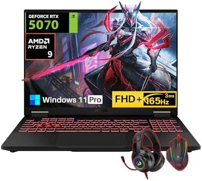 ASUS TUF A16 Gaming Laptop 2025, 16″ FHD+ 165Hz Display, AMD Ryzen 9 270, NVIDIA GeForce RTX 5070, 64 GB DDR5 RAM, 4 TB SSD, RGB Backlit KB, Windows 11 Pro, Bundle with REDRAGON Headphones & Mouse