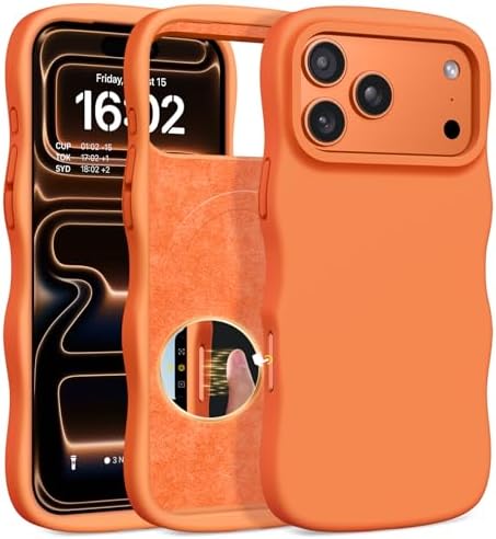 BENTOBEN Magnetic for iPhone 17 Pro Case 2025, Slim Silicone Cute Curly Wavy Edge [Compatible with Magsafe] Shockproof Drop Protective Bumper Women Girly Phone Cover for iPhone 17 Pro, Cosmic Orange