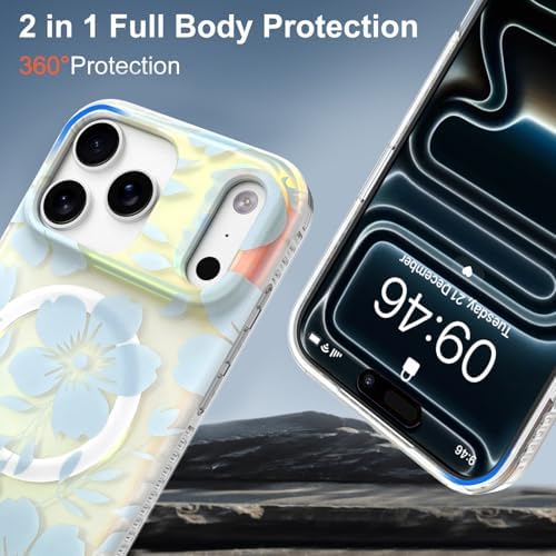 TEAUGHT Compatible with iPhone 17 Pro Case Cute Pattern Floral Flower Laser Iridescent Bling Glitter Crystal Shockproof Cover for Girls Women