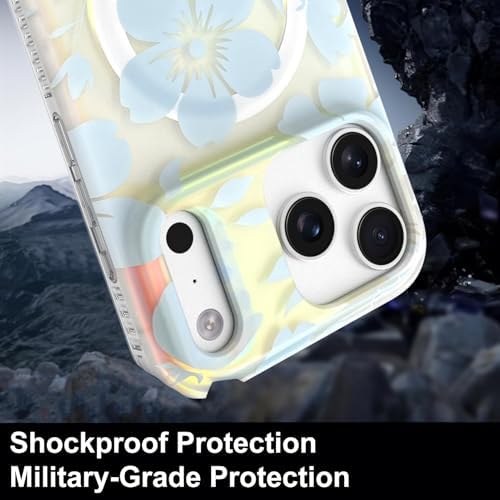 TEAUGHT Compatible with iPhone 17 Pro Case Cute Pattern Floral Flower Laser Iridescent Bling Glitter Crystal Shockproof Cover for Girls Women
