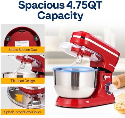 POWERFUL PERFORMANCE: The VIVOHOME stand mixer features a 380W pure copper motor that handles heavy doughs faster than human hands; 8+P speed settings help you master any recipe; Planetary mixing ensures fast and even results