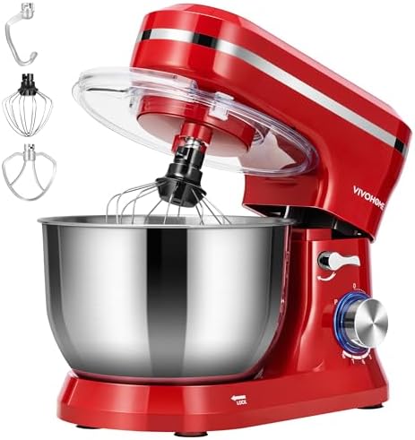 VIVOHOME 4.75 Quart Stand Mixer, 8 Speed Kitchen Electric Food Mixer, Household Stand Mixer for Baking, Cake, Bread with Beater, Dough Hook, Wire Whip and Egg Separator, Red