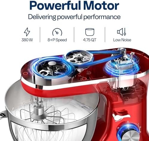 POWERFUL PERFORMANCE: The VIVOHOME stand mixer features a 380W pure copper motor that handles heavy doughs faster than human hands; 8+P speed settings help you master any recipe; Planetary mixing ensures fast and even results