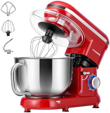 VIVOHOME Stand Mixer, 660W 10 Speed 6 Quart Tilt-Head Kitchen Electric Food Mixer with Beater, Dough Hook, Wire Whip and Egg Separator, Red